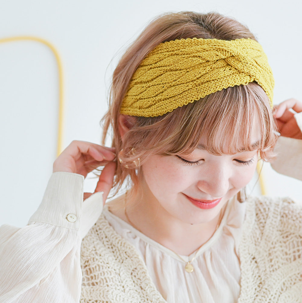 おでこの周りはやわらかタッチのパイル調、上半分はコットン混素材を薄くスッキリしたメリヤス編みに編み分けた裏地がついています。