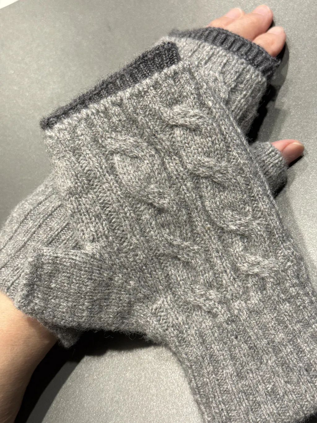 親指の部分や表地と裏地はミシンで縫い合わせているのではなく、特別な機械で一度に立体で編み上げているから、とってもすっきりとしたフォルムのかさねミトンです。
